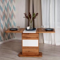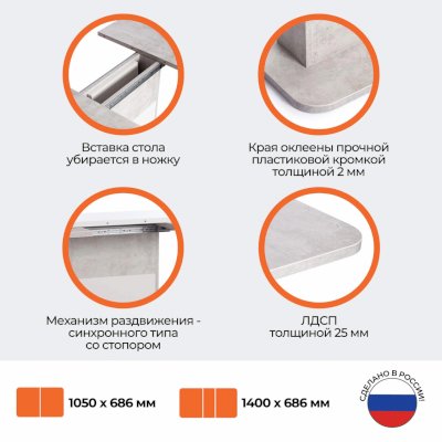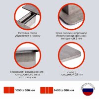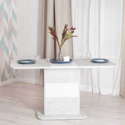 Кухонный стол Smart из коллекции Modern прекрасное решение простоты и функциональности. Прямоугольная столешница из ЛДСП толщиной 25 мм и оригинальная ножка-опора белого цвета и цвета бетон – идеальное сочетание для современного стильного пространства. Края стола оклеены прочной пластиковой кромкой толщиной 2 мм, что значительно продлит срок его службы. При необходимости можно быстро и легко увеличить размеры стола с помощью центральной секции, для этого используется механизм синхронного типа со стопором. Вставка стола легко убирается в ножку. За столом с комфортом могут разместиться от 4 до 6 человек. Эта стильная и комфортная модель станет любимым местом отдыха в вашем доме. Стол Smart отлично подойдёт для гостиной, для кухни или для загородного дома. Стол очень прост в сборке, инструкция по сборке прилагается.