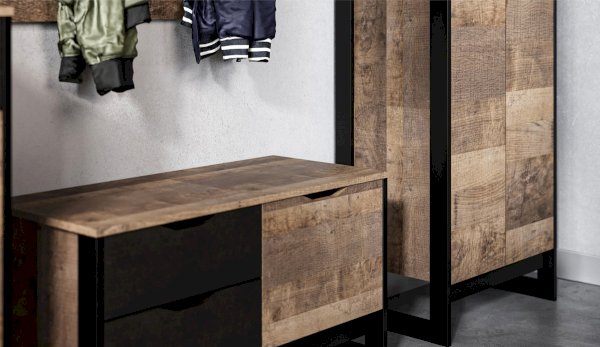 Функциональный шкаф Стокгольм – современное и удобное решение для прихожей, гостиной или спальни в стилях лофт, сканди или эко-минимализм. Трендовый декор – «Дуб Гранж» песочного оттенка с реалистичной имитиацией вручную обработанного дерева, выразительными зернистыми текстурами и характерной формой досок, соответствует последним городским тенденциям. Оригинальные ножки-опоры из МДФ контрастного цвета придают изюминку интерьеру. Внутри предусмотрены полки для белья и отделение с поперечной металлической штангой. Идеально компонуется со всеми модулями системы Стокгольм.