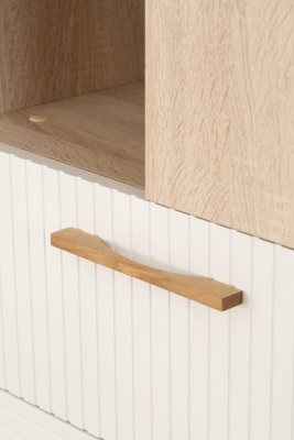 Для плавности хода створок петли оснащены доводчиками. В конструкции пенала имеются ящики, оснащенные шариковыми направляющими полного выдвижения. Современная система «push-to-open» позволяет открывать створки и ящики нажатием руки.
