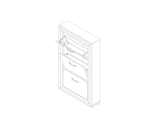 • За 3-мя откидными дверями расположены однорядные кассеты для обуви;