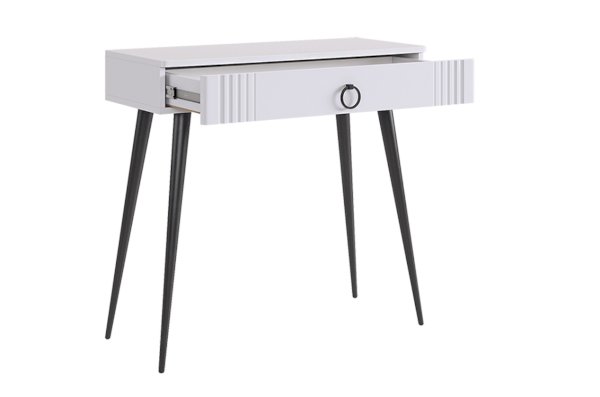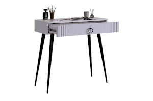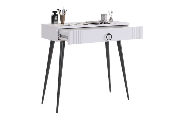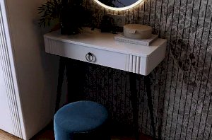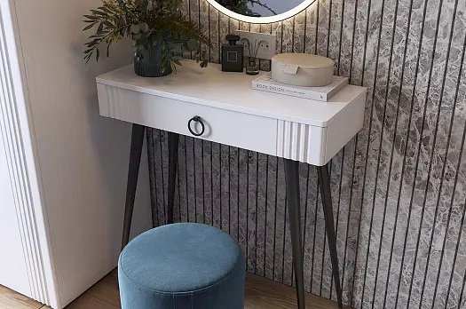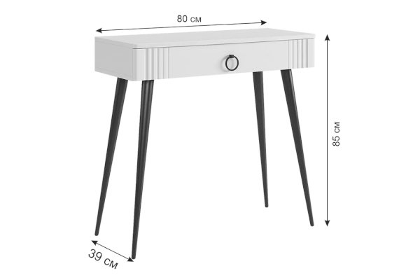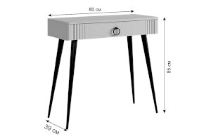 Туалетный столик 2 "Ева" – это элегантное и функциональное решение для вашей спальни. Шариковые направляющие на ящике обеспечивают плавное открывание и закрывание. Устойчивые черные опоры добавляют стиля столику.