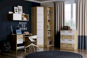 Комод «Фанк» -  идеально подходит для обустройства комнаты подростка. Светлые тона мебели, выдержанный стиль прекрасно смотрятся в любом интерьере. Четыре удобных выдвижных ящика – это огромный объем  для хранения белья, предметов одежды и аксессуаров. Выдвижные ящики оснащены шариковыми направляющими полного выдвижения, равномерно распределяют вес содержимого и обеспечивают плавный бесшумный ход ящика. Комод отлично сочетается с другими моделями коллекции «Фанк».