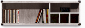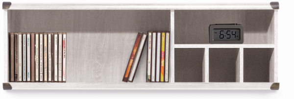 Полка разделена на 3 отделения: 2 открытые ниши без перегородок и ниша, разделенная перегородками на 3 ячейки