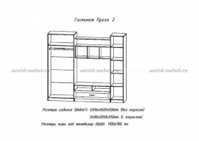 ТВ-секция Прага-1 + Двухстворчатый шкаф Прага-1 + Пенал Прага-1