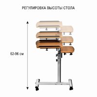 Для удобства перемещения по комнате, квартире столик имеет четыре маневренных колесика, которые фиксируются стопорами. Многофункциональный стол отлично вписывается в домашнюю обстановку, не занимает много места.