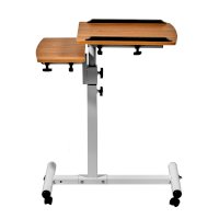 Столик оборудован поворотной столешницей из МДФ, состоящей из двух  независимых частей,  и металлическим основанием. Угол поворота столешницы составляет 180°, вплоть до вертикального положения. Высота подъема регулируется в диапазоне от 62 до 96 см. На столешнице имеются ограничители для ноутбука, планшета, предотвращающие падение гаджета.