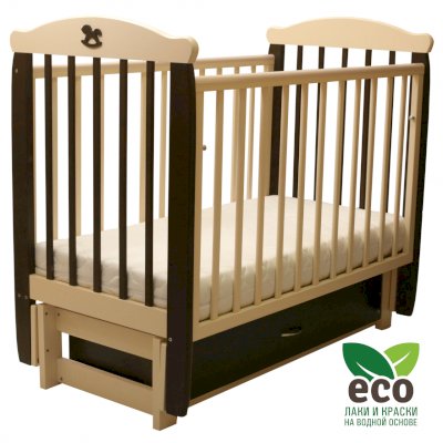 Кроватка "Соня 05" имеет механизм качания продольный маятник. Механизм качания фиксируется. Возможен вариант кровати с ящиком.