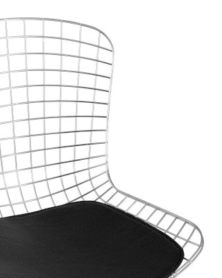 Оригинальная и современная модель стула Bertoia прекрасно впишется в любой интерьер дома или ресторана. Спинка и сидение выполнены из металлических прутьев с гальваническим покрытием в виде сетки, образуя единое целое. Подушка изготовлена из экокожи. Ножки выполнены из металла и имеют подставки, которые обеспечивают качественное "сцепление" с полом. Такая конструкция стула способна подарить ощущение легкости.