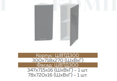 Глубина верхних шкафов: 300 мм
