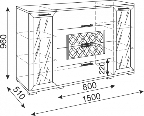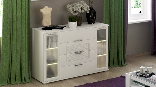 • К комоду можно дополнительно заказать светодиодную подсветку для стеклянных полок.
